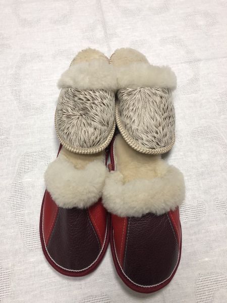 Женские и мужские тапочки из овечьего меха изготовлены на твердой, нескользящей, прорезиненной подошве, с верхом из гобеленовой ткани, натурального меха или натуральной кожи. Тапочки с меховой стелькой и меховой опушкой. В тапочках из овчины ваши ноги не будут потеть, поскольку натуральный мех впитывает в себя излишки влаги.